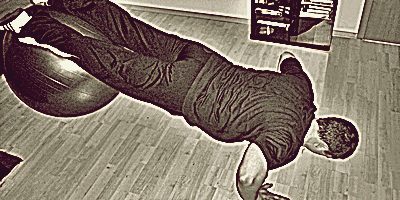 sich mit den Zehen auf dem Ball ab. Die Hände bleiben
